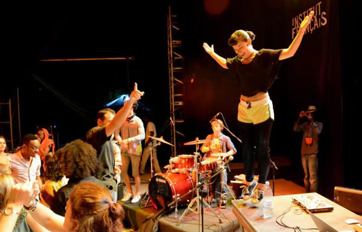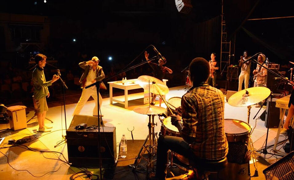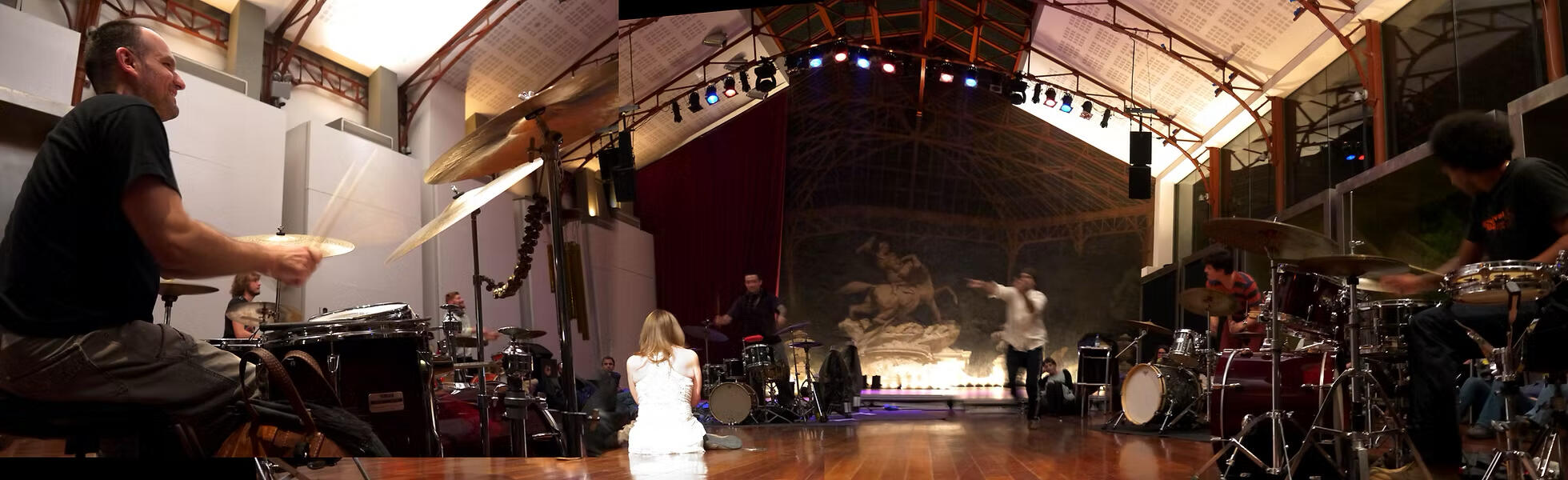 Demonshaker is a 6-drumset circle orchestra offering western audiences a demystified experience of healing trance, thru physicality of sound and circularity of rhythm. For it, Nathan created a gestural conducting language which favors invitation and choice, rather than command and control. A shamanic sculpting of supremely charged flow states. Demonshaker is a sonic purification and celebration of release & community. The creation process takes the form of a 1 week workshop with locally curated professional drummers resulting in a performance. It has been hosted numerous times in Berlin and Lisbon, and also in Oaxaca, Mexico and Sofia, Bulgaria.
