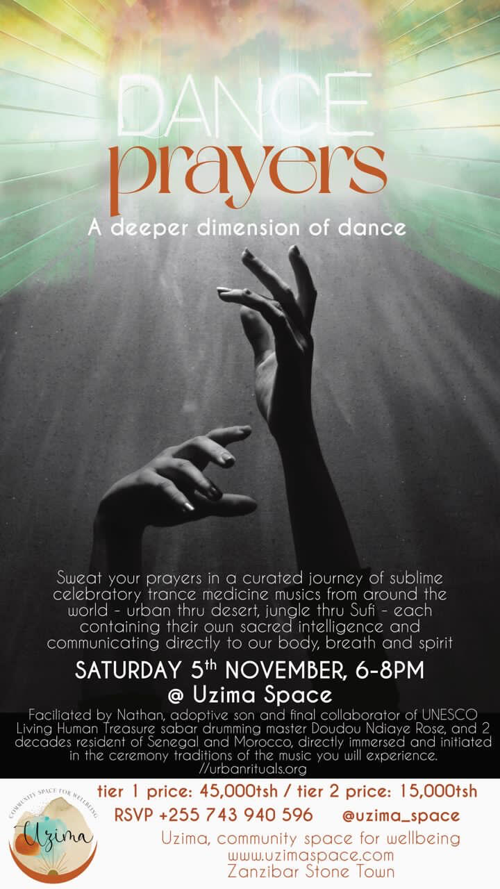 Dance Prayers is a deeper dimension of dance. It was conceived as a response to frequent invitations to DJ for Ecstatic Dance sessions... yet not resonating with the "spiritual techno" music of that scene, nor the familiar patterns it keeps the body moving in. Dance Prayers is therefore free of 1-dimensional electronic beats, while respecting the same values of a safe, sober, non verbal dance space where all forms of engagement with the music are welcome without judgement. It is a curated and live-DJd journey of sublime celebratory African and Sufi trance musics which carry their own inherent wisdom, communicating directly to the body, breath, and soul. Musics made by spirit-ware rather than software. Nathan has a personal embodied connection to these music medicines since 2+ decades and gives thanks for the privilege to share them and pay it forward.