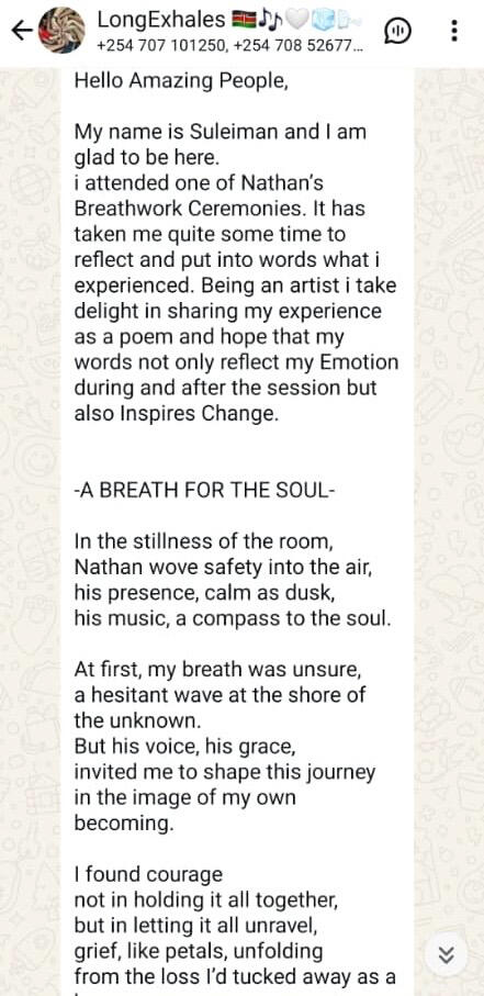 Nathan came into self-cultivation thru 2 decades of breathing, healing, growing and creating with the rhythms, drums, dance, grace— and much more only expressible in Wolof language— of Senegalese culture. In Dakar, he was the adoptive son and final collaborator of UNESCO ‘Living Human Treasure’ godfather of Sabar medicine drumming Doudou Ndiaye Rose, founding director of Deggi Daaj International Festival of Drums & Dance, DaKemistry Orchestra of transdisciplinary improvisation systems, and co-founder of the city’s first modern yoga studio, Prism Yoga. While covid restrictions destroyed what he built in Dakar, Marrakech has remained his 2nd home since 2+ decades, where he collaborates co-creating wellness retreats and performs with the Gnawa brotherhood.Beyond the continent, during summer breaks in Europe, he is also the founder and director of Demonshaker, a 6-drumset circle orchestra offering western audiences a demystified experience of healing trance.In Dar es Salaam he is the founder of the Serebuka Orchestra. In Mexico during covid, Tanzania since 2023, Morocco since 2024, and presently in Kenya, he has seeded a culture of Music-centric Breathwork + Ice Bath ceremonies.He holds a Master’s in Orchestral Conducting and Non-Western Percussion from the Conservatory of Amsterdam, and a diploma in African Trance Dance from L’Ecole des Sables in Senegal. The Baltic Sea of Estonia was his cold therapy teacher in the winter of 2008. A son of a paramedic turned yoga teacher, godson of Prince (the music star), lifelong surfer and musician, he’s also passionate about singing, group improvisation games, intentional brotherhood, and The Four Agreements.