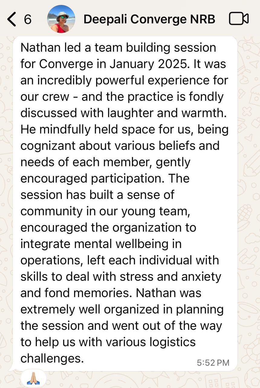Nathan is a seasoned wellness arts facilitator, who has had the privilege to hold safe, joyous, and sacred space for over a thousand clients. His methods of team building, breathwork, cold therapy, trance dance, and sound healing are creatively, musically, and originally conceived— as an embodied result of his own personal wellness practices, organically born and cultivated in the liminal magic space between cultural dimensions as well as between conventional disciplines. By request, he has adapted most of these offerings to create children-friendly versions. Nathan is also a certified practitioner of ethically sourced Kambo sacred indigenous medicine, and occasional ceremony guide for different sacred plant medicines.As a festival founder, artistic director, musical performer, workshop leader, trauma-informed ceremony holder, plant medicine practitioner, or DJ, Nathan gives thanks for the sacred privilege to hold space for safety, self reconnection, release & transformation, human connection, and celebrate community.